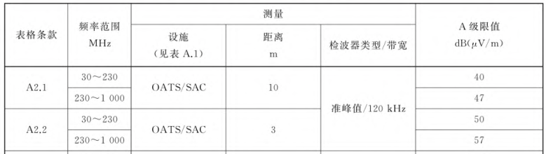圖2 1組A類(lèi)設(shè)備的電磁輻射騷擾限值要求