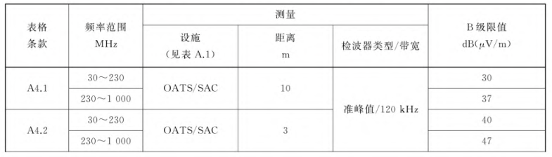 圖4 A級(jí)設(shè)備輻射發(fā)射限值